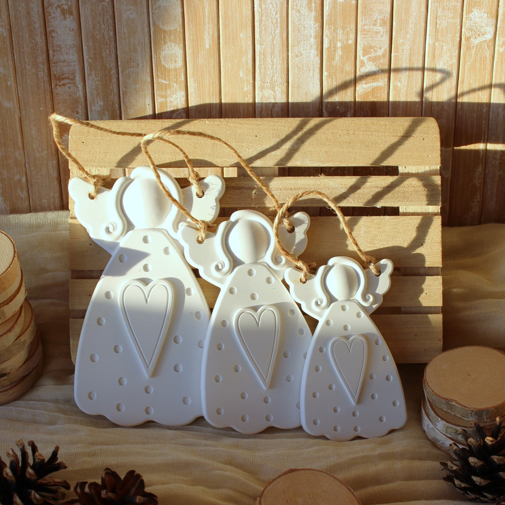 Trio de Anjos para pendurar, perfumados com aroma de talco.